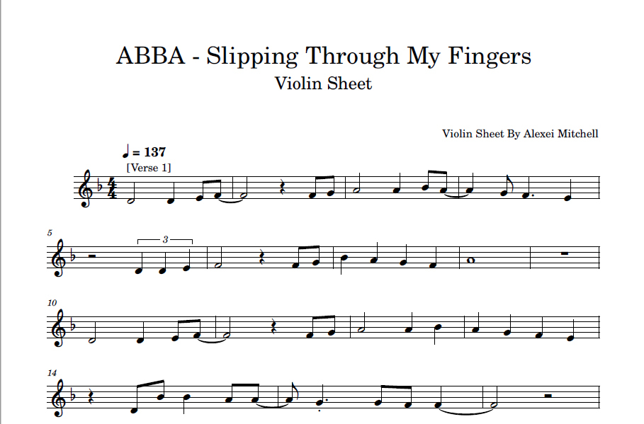 ABBA - Slipping Through My Fingers Violin Sheet$3+$3+https://schema.org/InStockusdAlexei MitchellAlexei MitchellName a fair price:$QuantityI want this!4 salesYou'll get two version of violin sheet. One with notes name.Add to wishlist New wishlistShareShare on XShare on Facebook Copy linkCopy product URLNo refunds allowed